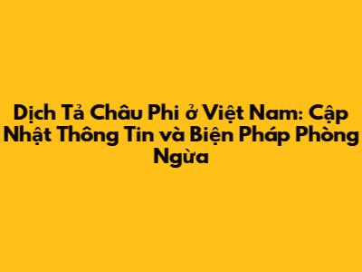 Tình Hình Dịch Tả Châu Phi tại Việt Nam: Cập Nhật Mới Nhất