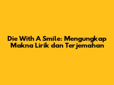 Die With A Smile adalah lagu yang kaya akan emosi dan makna. Bagi kalian yang penasaran dengan arti lagu Die With A Smile, lirik, dan terjemahan-nya, mari kita bedah bersama-sama! Lagu ini, yang seringkali bikin kita merenung, menyimpan pesan-pesan mendalam tentang kehidupan, cinta, dan perjuangan. Kita akan menyelami setiap bait, memahami nuansa bahasa yang digunakan, dan bagaimana pesan tersebut disampaikan kepada pendengar. Jadi, siap-siap buat merasakan gelombang emosi dan mendapatkan inspirasi dari lagu ini, guys!