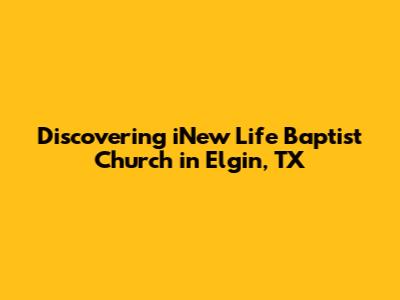 Hey guys! Ever found yourself searching for a place where you can truly feel at home, connect with awesome people, and grow in your faith? Well, if you're in the Elgin, Texas area, you might just find exactly what you're looking for at iNew Life Baptist Church. This place isn't just a church; it's a vibrant community where everyone's welcome. It's a spot where you can explore your beliefs, build lasting friendships, and maybe even discover a deeper sense of purpose. So, let's dive in and see what makes iNew Life Baptist Church so special. We'll chat about its mission, the kind of people you'll meet, and the cool stuff they've got going on.