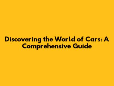 Discovering The World Of Cars: A Comprehensive Guide
