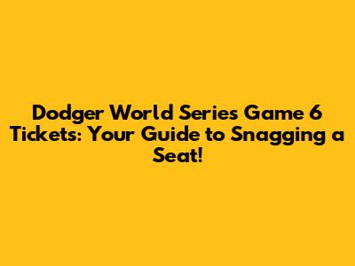 Dodger World Series Game 6 Tickets: Your Guide