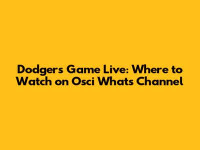 Dodgers Game Live: Where To Watch On Osci Whats Channel