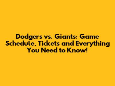 Dodgers Vs. Giants: Schedule, Tickets & More!
