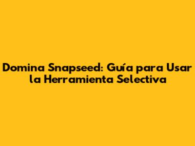 Domina Snapseed: Guía Para Usar La Herramienta Selectiva