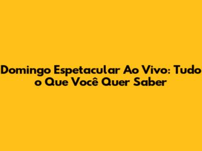 Domingo Espetacular Ao Vivo: O Que Você Precisa Saber