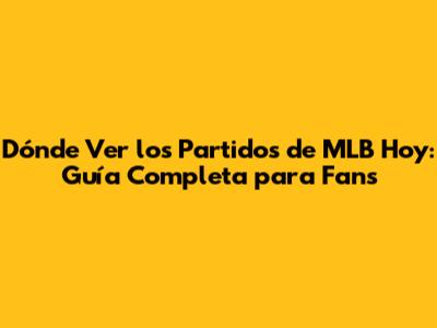 Dónde Ver Los Partidos De MLB Hoy: Guía Completa