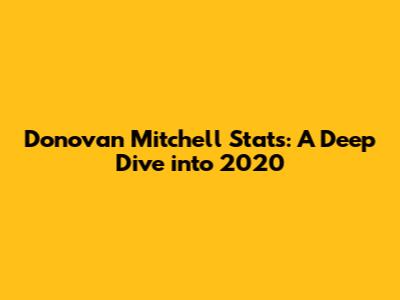Donovan Mitchell Stats: A Deep Dive Into 2020