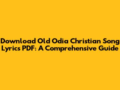 Download Old Odia Christian Song Lyrics PDF: A Comprehensive Guide