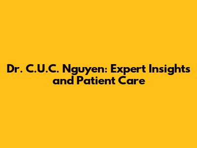 Dr. C.U.C. Nguyen: Expert Insights And Patient Care