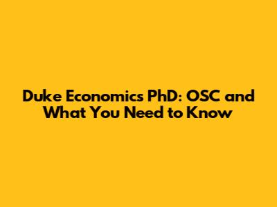 Duke Economics PhD: OSC And What You Need To Know