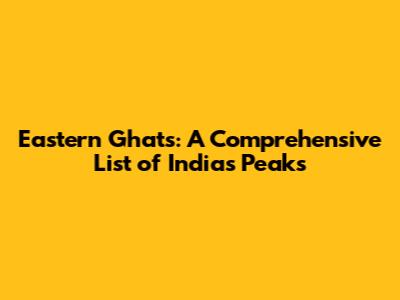 Eastern Ghats: A Comprehensive List Of India's Peaks