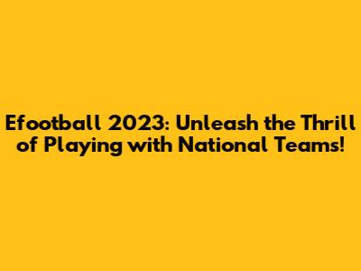 Hey guys, are you ready to dive headfirst into the exciting world of eFootball 2023? If you're anything like me, you're probably itching to take control of your favorite national team and dominate the virtual pitch. Well, you're in luck! This article is your ultimate guide to mastering eFootball 2023 with national teams. We'll cover everything from team selection to strategic gameplay, ensuring you're well-equipped to experience the thrill of international football. Get ready to score some amazing goals, celebrate epic victories, and maybe even develop some serious bragging rights among your friends. Let's get started!