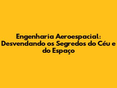 Engenharia Aeroespacial: O Universo Ao Seu Alcance!