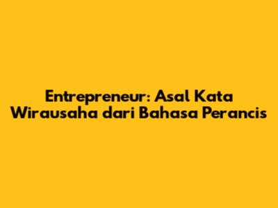 Entrepreneur: Asal Kata Wirausaha Dari Bahasa Perancis