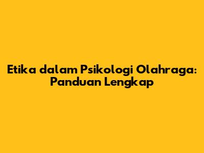 Etika Dalam Psikologi Olahraga: Panduan Lengkap