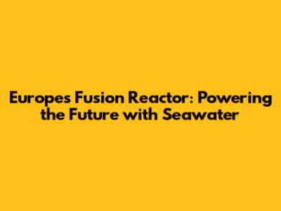 Europe's Fusion Reactor: Powering The Future With Seawater