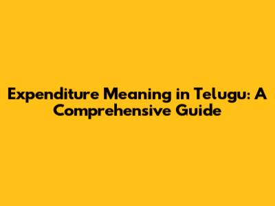 Expenditure Meaning In Telugu: A Comprehensive Guide