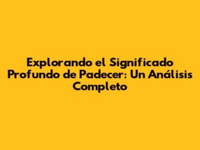 Explorando El Significado Profundo De Padecer: Un Análisis Completo