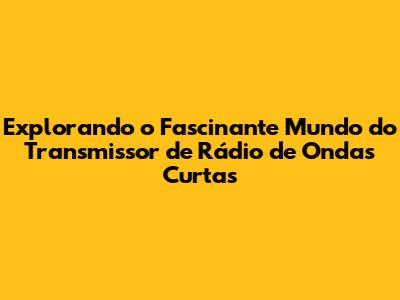 Como Funciona um Transmissor de Ondas Curtas: Uma Visão Detalhada