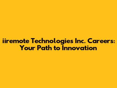Explore Exciting Career Opportunities At Iiremote Technologies Inc.
