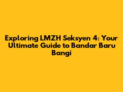 Hey guys! Ever wondered about LMZH Seksyen 4 in Bandar Baru Bangi? Well, you're in for a treat! This area is a bustling hub with a lot to offer, from delicious food to exciting activities and convenient amenities. Whether you're a local resident, a potential homebuyer, or just curious about exploring this vibrant part of town, this guide is for you. We'll dive deep into what makes LMZH Seksyen 4 such a special place, covering everything from its residential areas and commercial hotspots to the best places to eat and things to do. So, grab a coffee, settle in, and let's explore LMZH Seksyen 4 together!