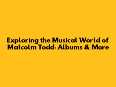 Exploring The Musical World Of Malcolm Todd: Albums & More