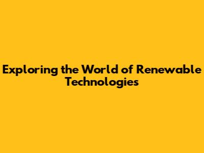 Exploring The World Of Renewable Technologies