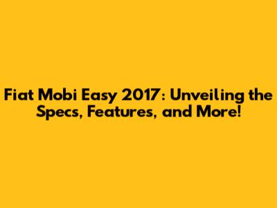• What engine does the Fiat Mobi Easy 2017 have? The Fiat Mobi Easy 2017 typically comes with a 1.0-liter, four-cylinder engine designed for fuel efficiency and urban driving.