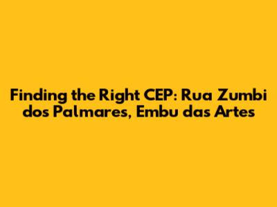 Hey guys, let's dive into something super practical today: figuring out the CEP (Código de Endereçamento Postal) for Rua Zumbi dos Palmares in Embu das Artes. This is something everyone needs to know when sending mail, packages, or even just trying to get a pizza delivered! But fear not, because it's easier than you think. We'll break down the process step by step, ensuring you get the correct CEP and understand why it's so important. Let's make sure your mail finds its destination without any delays, shall we?
