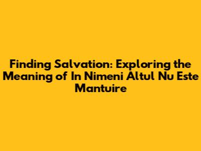 Finding Salvation: Exploring The Meaning Of 'In Nimeni Altul Nu Este Mantuire'
