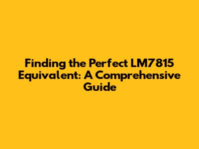 Finding The Perfect LM7815 Equivalent: A Comprehensive Guide