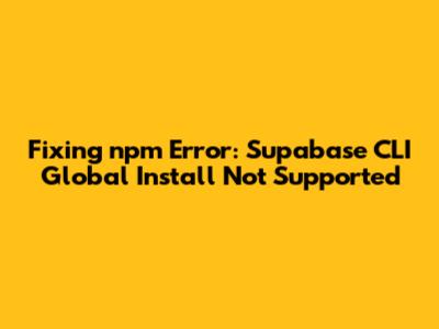 Fixing Npm Error: Supabase CLI Global Install Not Supported