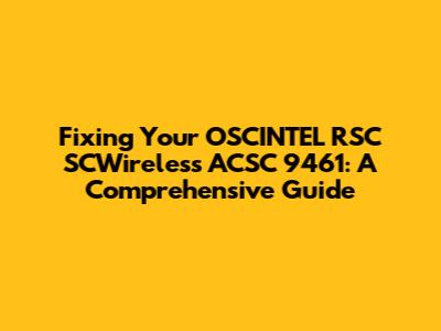 Fixing Your OSCINTEL RSC SCWireless ACSC 9461