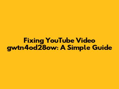Fixing YouTube Video Gwtn4od28ow: A Simple Guide
