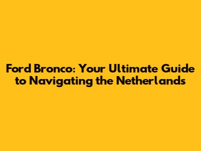Ford Bronco: Your Guide To Exploring The Netherlands