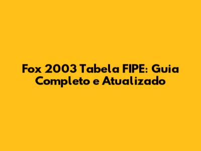 Como Consultar a Tabela FIPE do Fox 2003? (How to Consult the FIPE Table for the Fox 2003?)