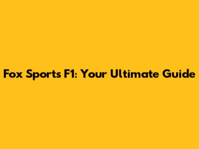 Fox Sports F1: Your Ultimate Guide