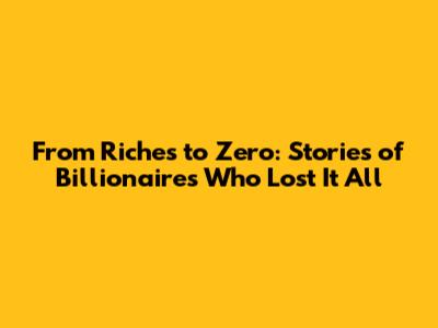 From Riches To Zero: Stories Of Billionaires Who Lost It All