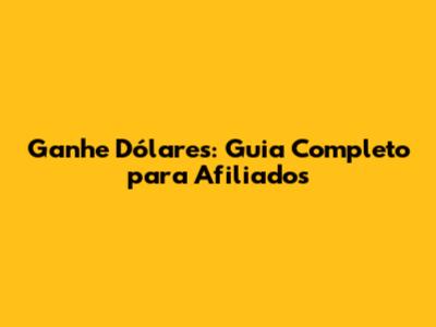 Ganhe Dólares: Guia Completo Para Afiliados