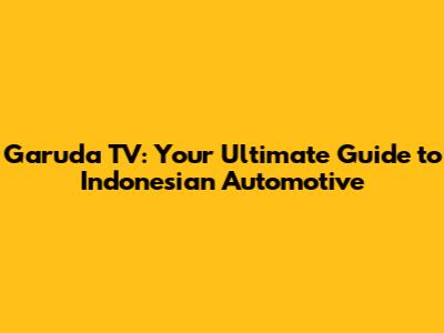 Garuda TV: Your Ultimate Guide To Indonesian Automotive