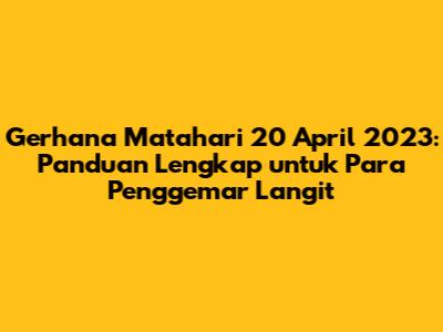 Gerhana matahari 20 April 2023 adalah kesempatan langka untuk menyaksikan keindahan alam semesta. Dengan memahami jam berapa gerhana matahari 20 April 2023 terjadi, jenis gerhana yang akan terjadi, lokasi terbaik untuk menyaksikannya, dan tips keselamatan, Anda dapat mempersiapkan diri untuk menikmati momen yang menakjubkan ini. Pastikan untuk merencanakan dengan baik, mencari informasi dari sumber terpercaya, dan selalu mengutamakan keselamatan mata Anda. Jangan lewatkan kesempatan untuk menyaksikan salah satu fenomena astronomi yang paling spektakuler! Selamat menyaksikan gerhana!