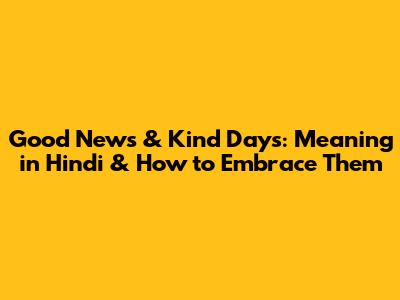 Good News & Kind Days: Meaning In Hindi & How To Embrace Them