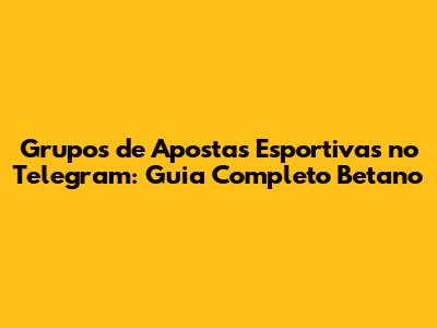 Grupos De Apostas Esportivas No Telegram: Guia Completo Betano