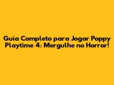 Guia Completo Para Jogar Poppy Playtime 4