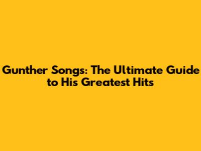 Gunther Songs: The Ultimate Guide To His Greatest Hits