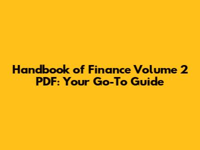 Why "Handbook of Finance Volume 2 PDF" is a Must-Read