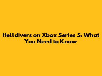 Helldivers On Xbox Series S: What You Need To Know