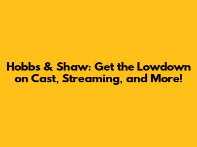 Hobbs & Shaw: Cast, Streaming Availability & More!