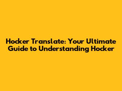 Hocker Translate: Your Ultimate Guide To Understanding Hocker