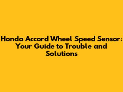 Honda Accord Wheel Speed Sensor: Symptoms, Diagnosis, & Repair
